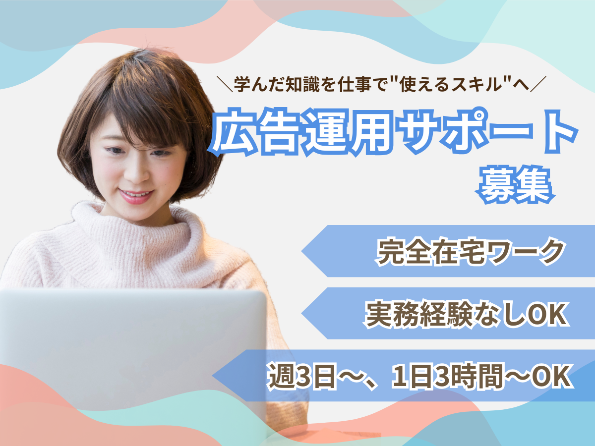 | 応募資格 | ・広告運用(Meta/Google)について学んだ経験がある方 (スクール・独学・書籍など、形式は問いません) ・意欲的に仕事に取り組める方 ・PCと安定したインターネット環境がある方 ・数字を見ることに抵抗がない方 ・基本的なコミュニケーションと報連相ができる方 |